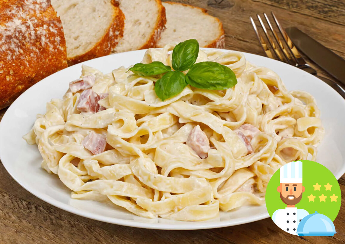 Такую пасту сможет приготовить даже ребенок, но получится очень вкусно и сочно. Главный ингредиент — это сливки, благодаря которым паста приобретает свой неповторимый вкус. Доброе утро, читатели! На улице морозно и снежно, и конечно хочется по скорей прийти домой с работы и уютно провести вечер с близкими. Простой способ оказаться в теплой и комфортной обстановке дома – это поужинать всей дружной семьей. Паста идеально подходит для такого домашнего вечера! Ингредиенты: Бекон придает пасте приятный аромат и яркий вкус, но повторюсь, этот рецепт изначально был без бекона. Так что пробуйте и экспериментируйте, кому как вкуснее. Перейдем к нашему рецепту: 1. Нарезаем куриное филе кубиками, добавляем к филе соль, немного оливкового масла, прованские травы и подавленные зубчики чеснока. Все это хорошо перемешиваем в тарелке и маринуем 5 минут. 2. На разогретую сковородку, выкладываем наше филе и обжариваем 10 минут на среднем огне. 3. Нарезаем бекон и добавляем к филе, все вместе