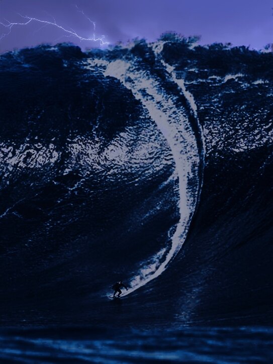 Выйдя на улицу под невероятной силы дождь, человек скинул одеяние до сего момента покрывавшее его тело с головы до пят. Это был кусок стали, атлетичное тело отливало ртутью под всполохами молний, неведомый скульптор создал свое лучшее творение. Мужчина поднял голову вверх, туда, откуда мистический властитель наполнял океанские волны энергией мириад молний. Время встало ... В следующее мгновение одна, невероятной яркости и величины молния ударила в песок прямо у ног испалина. Когда вспышка исчезла так же мгновенно как и появилась, на мокром песке пляжа, вертикальным обелиском блеснул ртутного цвета серф-борд. Эпичная картина предстала взорам всех кто имел не осторожность оказаться в этом уединенном месте в тот день. Бушующий грозящий смертельной опасностью неистовый океан, тяжелые, свинцовые небеса и разрезающие их грохочущие молнии, а против всего этого буйства природы одинокая фигура человека с серфом в руках. Не земной красоты, высоченного роста с серфом в руках он всматривался в чер