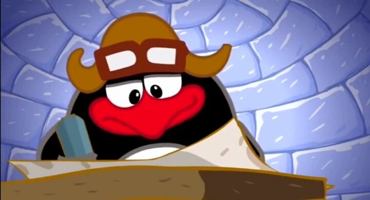 Пин очень хотел сделать одну вещь и начертил чертёж. Но преступить к работе Пин не смог... Пришли его друзья пингвины с едой.