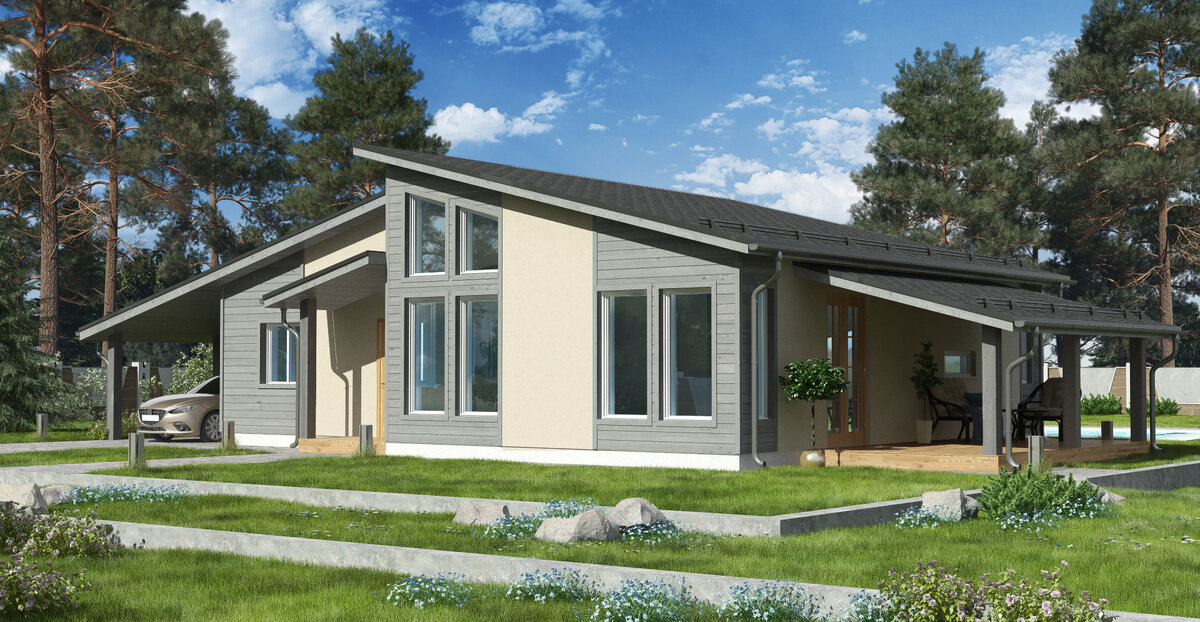 26.11.21 Продолжаем знакомить вас с нашими реализованными проектами от ЦКТ-Ростов. Самый востребованный у нас проект КС-44. За основу, первым заказчиком, был выбран шведский стиль . Отличительные особенности проекта - ломанная кровля и высокие, открытые потолки. В следующих статьях мы расскажем о еще двух наших проектах этой серии. а пока - проект КС-44 «Инна» ! Мы спроектировали этот дом для тех, кто любит открытые пространства и хочет больше места для общения. Стиль NewFunkis создает современное впечатление, которое усиливается панорамными окнами и вторым светом во всех помещениях. Площадь 111 м2. Три спальни и большая кухня-гостиная с выходом на террасу 18м 2 и котельную-постирочную, в которую добавлены раковина и унитаз , автонавес. Зал характеризуют высокие, открытые потолки . что даёт дому ощущение открытого пространства и обьёма. В конструкции кровли применены двухпоясные балки на металлозубчатых пластинах (МЗП) , расчитанных на снеговые и ветровые нагрузки. В базовом варианте п