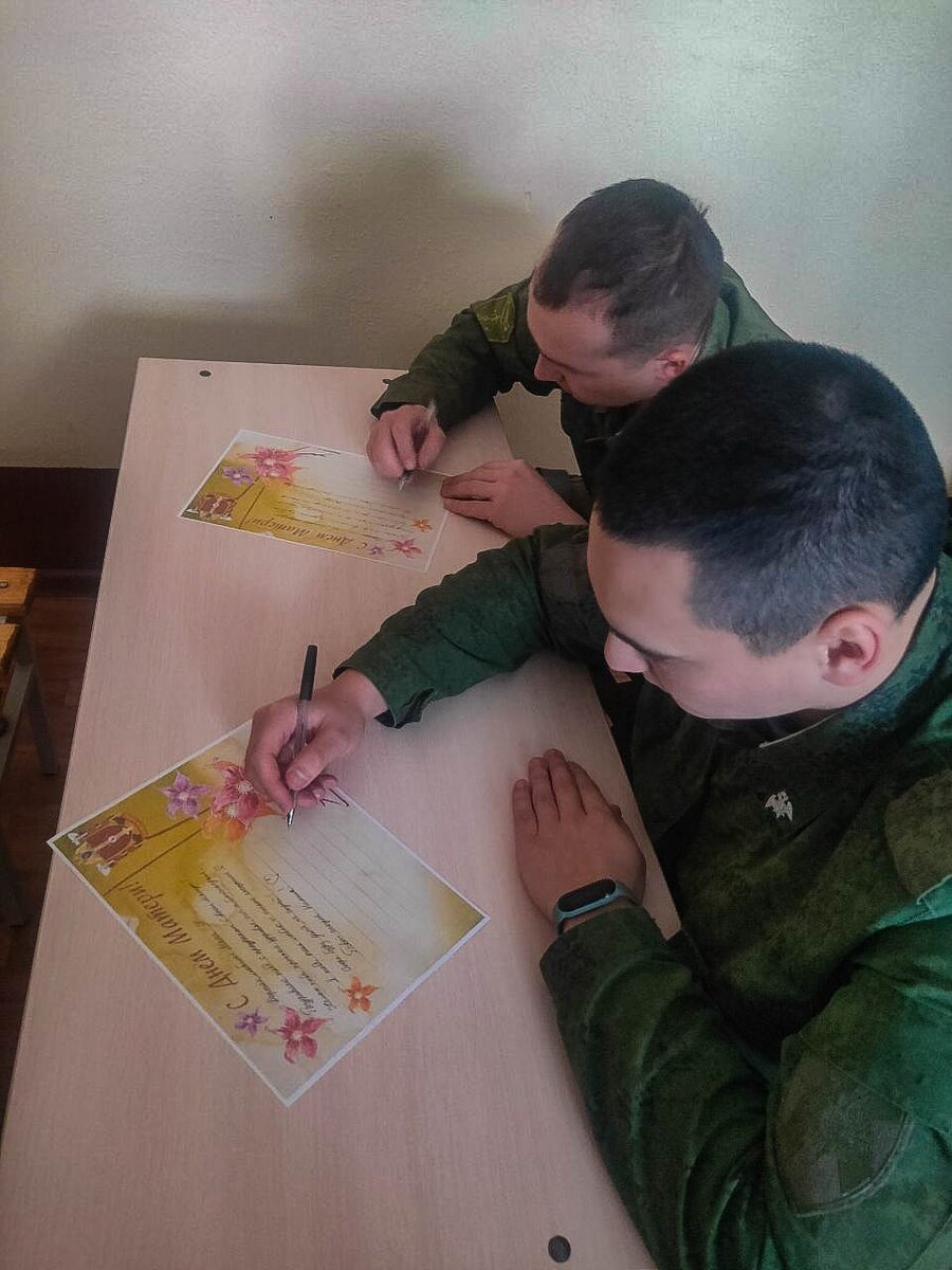 В письмах военнослужащие рассказали мамам о свое службе, как проходят их будни. Конечно, не обошлось без поздравлений: пожеланий счастья, добра и здоровью.