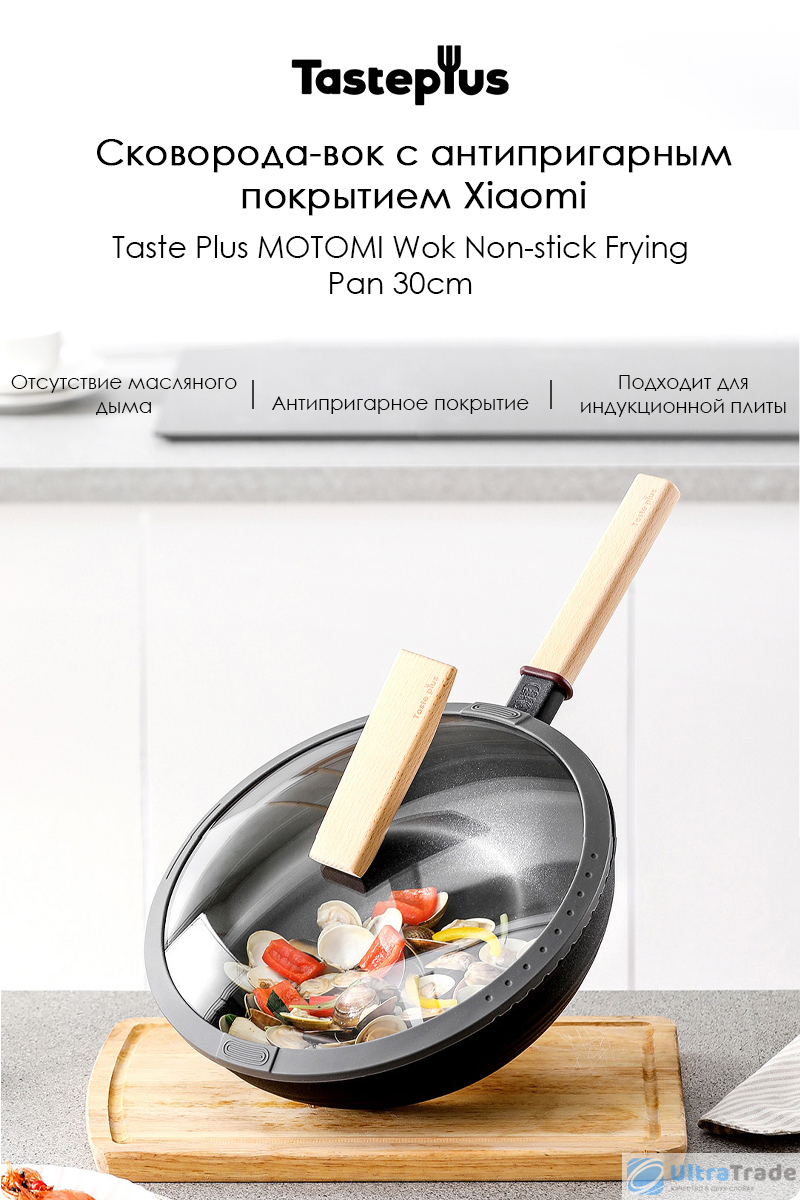 Чтобы блюдо получилось не только вкусным, но и полезным, необходимо правильно выбрать посуду для приготовления. Xiaomi Taste Plus MOTOMI Wok Non-stick Frying Pan изготовлена из алюминиевого сплава и имеет качественное антипригарное покрытие, которое позволит сохранить всю пользу продуктов. Алюминиевый сплав Корпус сковороды сделан из качественного алюминиевого сплава, который отличается высокой твердостью и равномерным нагревом. Использование такого сплава позволяет улучшить показатели теплопроводности и уменьшить вес изделия. Сковородка совместима с разными плитами, вы сможете использовать ее на газовой, индукционной или электрической конфорке – ваши блюда останутся превосходны! Надёжность и долговечность Высокопрочное, износоустойчивое антипригарное покрытие швейцарской марки ILAG облегчает готовку и значительно увеличивает срок службы изделия. Антипригарное покрытие препятствует прилипанию пищи, что позволяет значительно уменьшить количество масла и сделать ваши блюда полезнее и зд