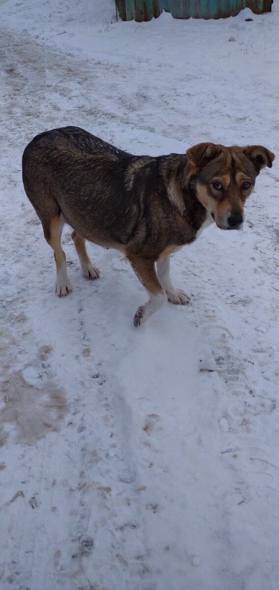 У нас не было в планах забирать эту безнадзорную собаку с улицы. Но такую уж выбрали мы деятельность, что планов у нас никогда нет, как и куда идти оказывать помощь бездомным животным (за исключением отлова — там всё планируется до мелких деталей) — мы всегда просто идём, едем и спасаем. Так и вышло в этот раз. Около 3 недель назад мы встретили собачку на проезжей части дороги — она слёзно просила пирожок у девочки. Собака была крайне худая: несмотря на то, что она будет мамой, её полнота от беременности не закрывала торчащие рёбра. Голодные глаза просили помощи, но что мог дать ребёнок... Я вышла из машины, чтобы собаку увести от девочки. Ребёнок боялся лишний раз шевельнуться, так как собака не давала пройти. В итоге я купила 4 пирога и собака переключилась на меня. Пока она ела, девочка смогла уйти. В магазине я узнала, что собачка бывшая домашняя. Продавец просила найти её хозяев, а если не сможем — то помочь стерилизовать и обратно вернуть. Продавец рассказала, что собака добрая и