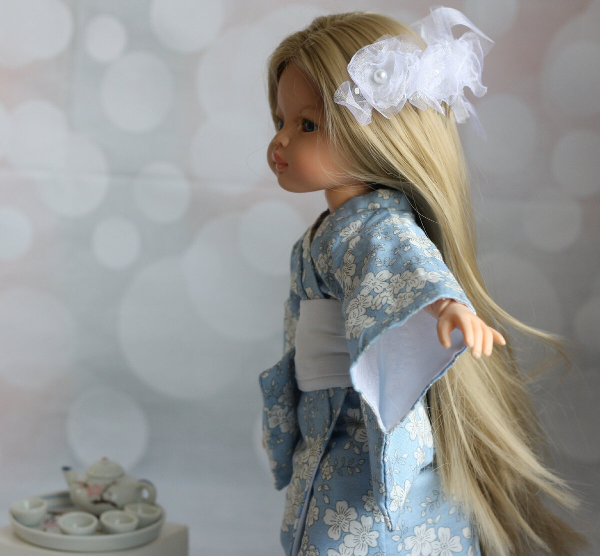 Моя коллекция образов Paola Reina No 51 Образ «Сакура» Я сначала все сшила и сфотографировала, а потом только узнала что женское и мужское кимоно положено надевать с запахом направо. ЗапАх налево это для тех, кто уже не относится к миру живых. На похоронах тело одевают в кимоно с запахом налево, говорят «Мир после смерти противоположен нашему миру».