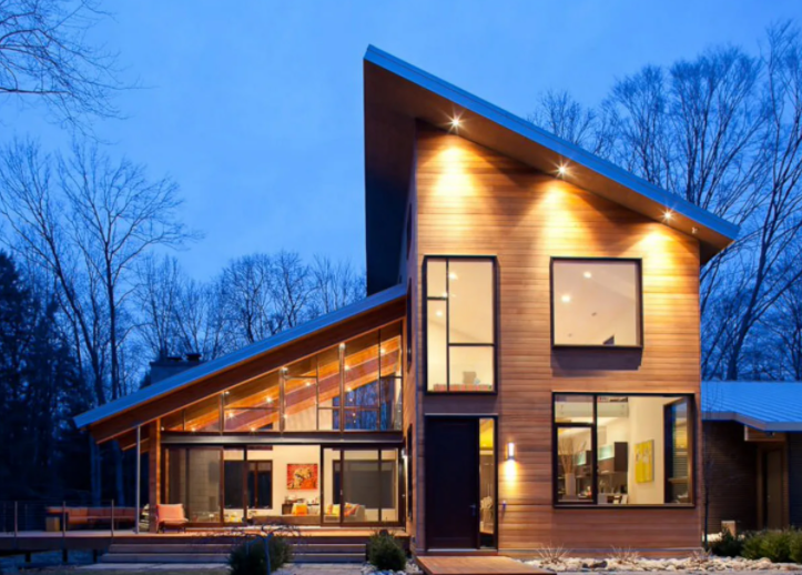 Стильный дом с косой крышей