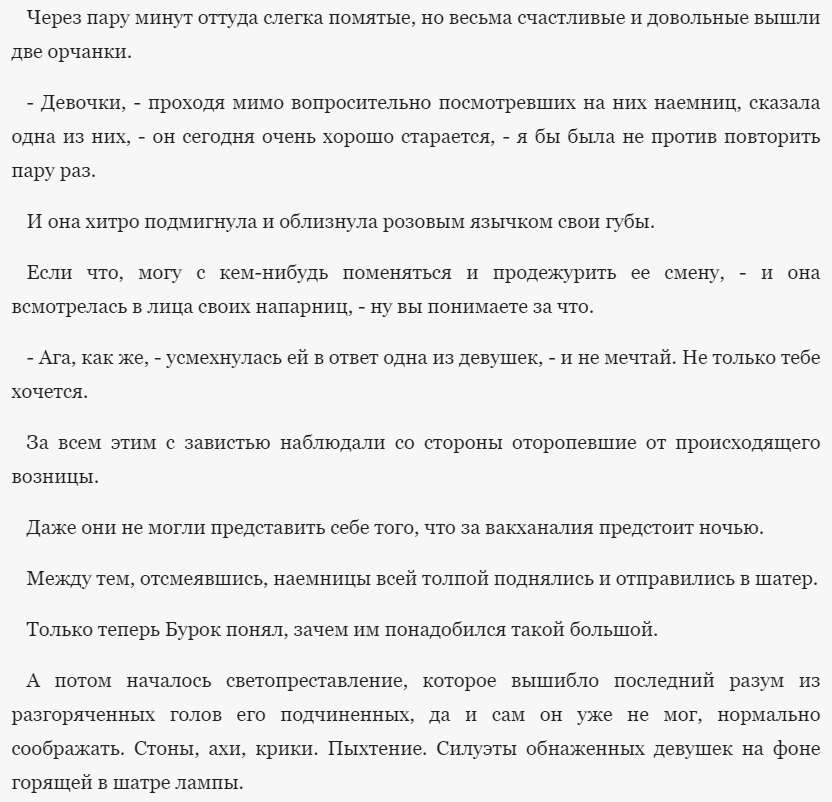 Через пару минут оттуда слегка помятые, но весьма счастливые и довольные вышли две орчанки.