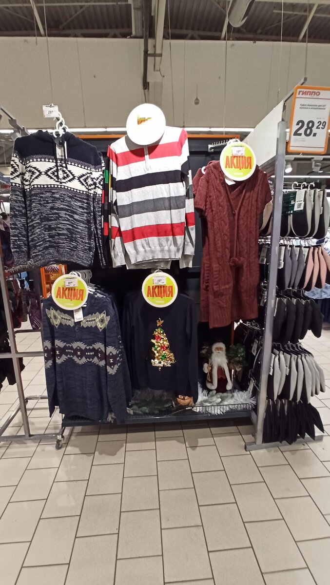 Почему у меня на канале появилась такая статья, спросите вы? Все просто! В последнее время многие стилисты делают обзоры из гипермаркетов, выбирая там одежду, развешанную между кабачкам и пахлавой. Шучу, конечно, но смысл вы уловили. Я такие обзоры люблю и постоянно на них залипаю. И вот вчера, придя в гипер за едой, я решила зайти в женский отдел, посмотреть на ассортимент и провести свое мини расследование. Что из этого вышло-узнаете дальше! Не переключайтесь!) Локация: Беларусь, Минск, Гипермаркет Гиппо. Цены в бел рублях, так что не удивляйтесь. Дорога в женский отдел пролегала мимо мужского) А в нем меня встретил вот такой "красавчик") 15.00, а именно столько стоила эта жемчужина лёгкой промышленности, составляет меньше 500 рос рублей. Домашний халатик с модными (или уже нет)), лампасами. Удивительный домашний костюм. Широкая горловина и крой не дают ему ни единого шанса. Спальные костюмы. А это офисный или школьный уголок. В нем можно найти рубашки и юбки. Вот такие, наприме