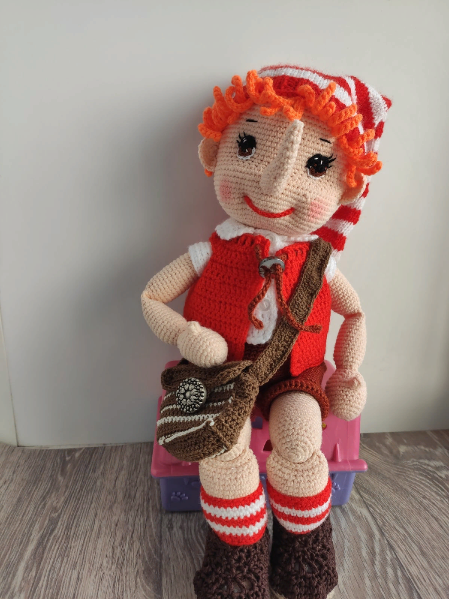 К старости ему отрада. Этот мальчик переживает массу приключений со своими друзьями очаровательной Мальвиной и немного печальным Пьеро. Ну а я решила пройти этот сказочный путь со своими куклами, но только не деревянными, а вязанными крючком. Я уже знакомила вас с черепахой Тортиллой и Артемоном, а сегодня хочу показать вам Буратино. Вот такой получился Буратино, одежда, кроме колпачка вся съемная, глазки вышиты нитками мулине и пришиты к голове, в носике синильная проволока и в теле куклы вставлен каркас из проволоки, чтобы исключить заваливание головы. Как вам Буратино? Ну а кому не хочется читать про других персонажей сказки, посмотрите фотки. Не знаю, какой публике Дзен показывает мои статьи, никакой движухи. С любовью, ваша Любовь. #вязание крючко