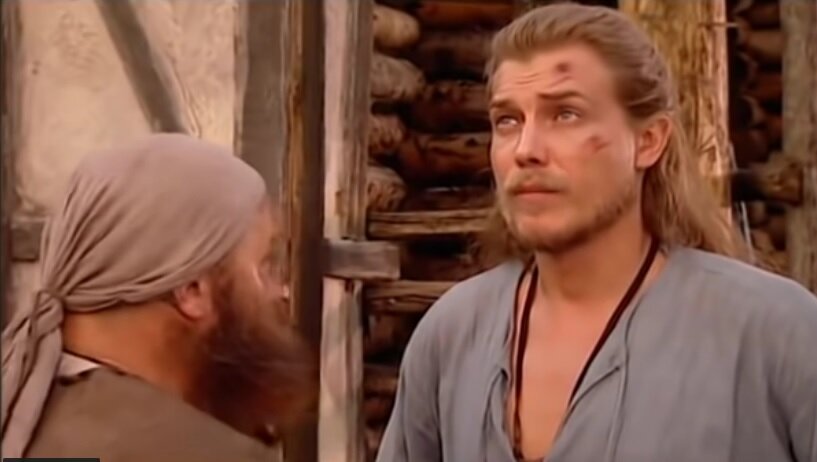А бой Свалтыга непременно проиграет, потому что тайны муримского боя никому не ведомы. Волкодав, поразмыслив, отпрашивает Свалтыгу у воеводы, тащит его в каморку и за полчаса проводит ускоренный курс муримского боя с названием всех приемов. Бой красивый, но короткий. Жаль, потому что снято отлично.