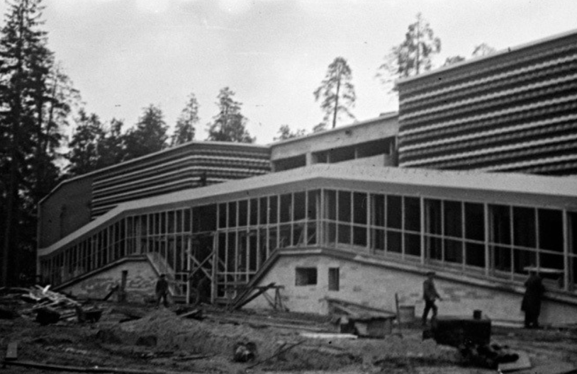 По оси на аллею был вынесен не сохранившийся отдельный павильон касс в виде монументальной остекленной рамы