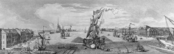 На гравюре "Проспект Невской перспективной дороги от Адмиралтейских триумфальных ворот к востоку" мы также можем видеть здания с полузасыпанными первыми этажами на самом берегу Невы. И специально "так строить" могли только те, кто собирался в подвалах разводить рыбу. Вот только постоянные большие и малые наводнения любителям "так строить" постоянно создавали бы большие проблемы.