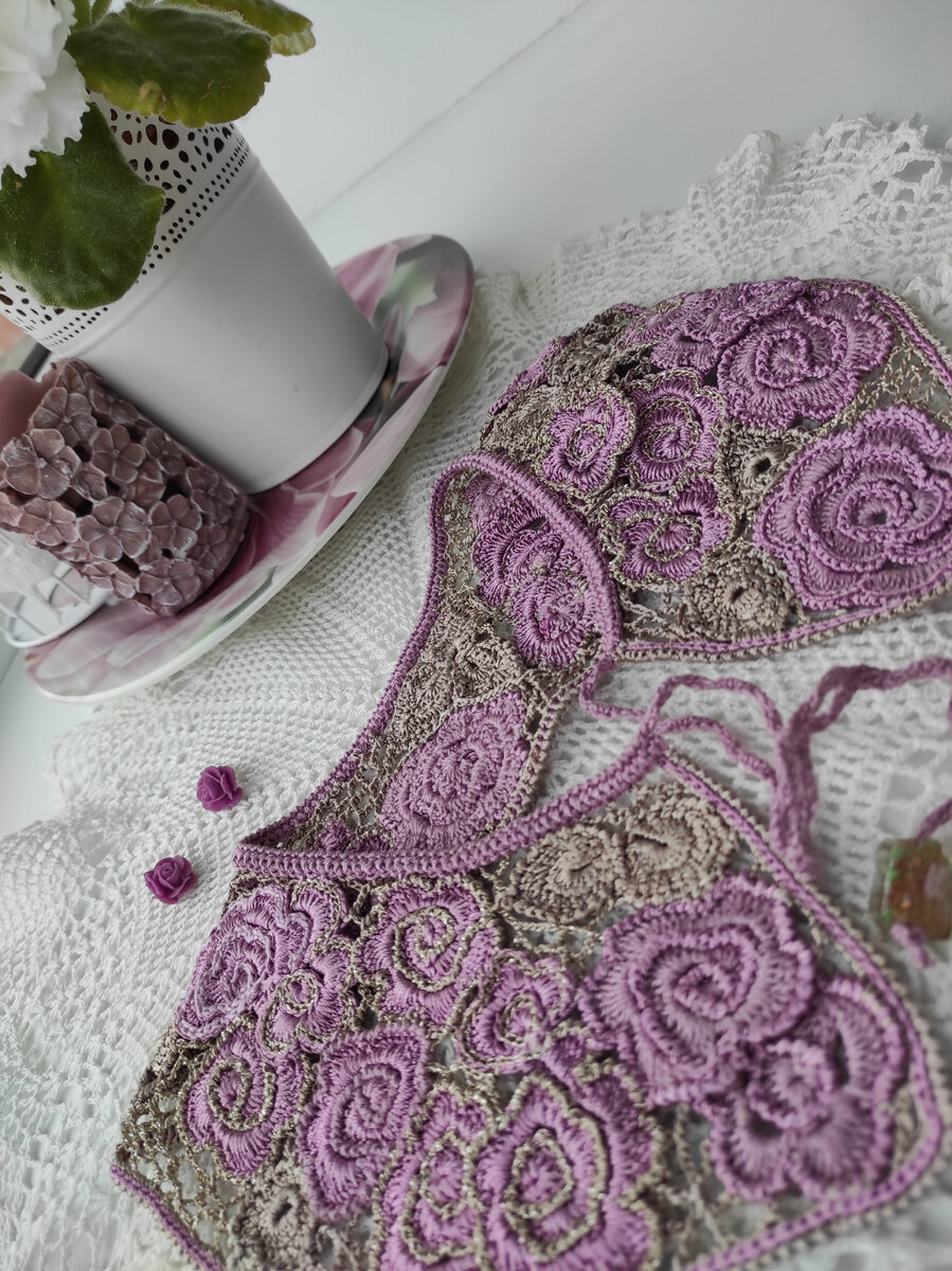 Воротник связан крючком в технике сцепного кружева, отдельные мотивы соединяются на выкройке путем сшивания и вязаной сеткой. Для создания работы использовалась пряжа различного состава: хлопок, микрофибра, пряжа с люрексом. Сочетание матовых и блестящих нитей создает интересную игру фактур. Воротник завязывается, что позволяет регулировать его размер и прилегание к шее. На конце завязок есть красивые стеклянные бусины, узор которых перекликается с узором воротника. С помощью такого воротничка можно поменять вид вашего любимого, но надоевшего платья. Любая блузка станет наряднее, если украсить ее таким воротником. Воротничок сделает ваш образ индивидуальным, ведь он существует в единственном экземпляре. Размер воротника: Длина окружности по шее 39 см. Ширина воротника сзади 7 см, впереди 9, 5 см. Цена: 3500 руб. + пересылка. #воротничок вязаный #воротник нарядный #воротник накладной #сцепное кружево вязание как творчество