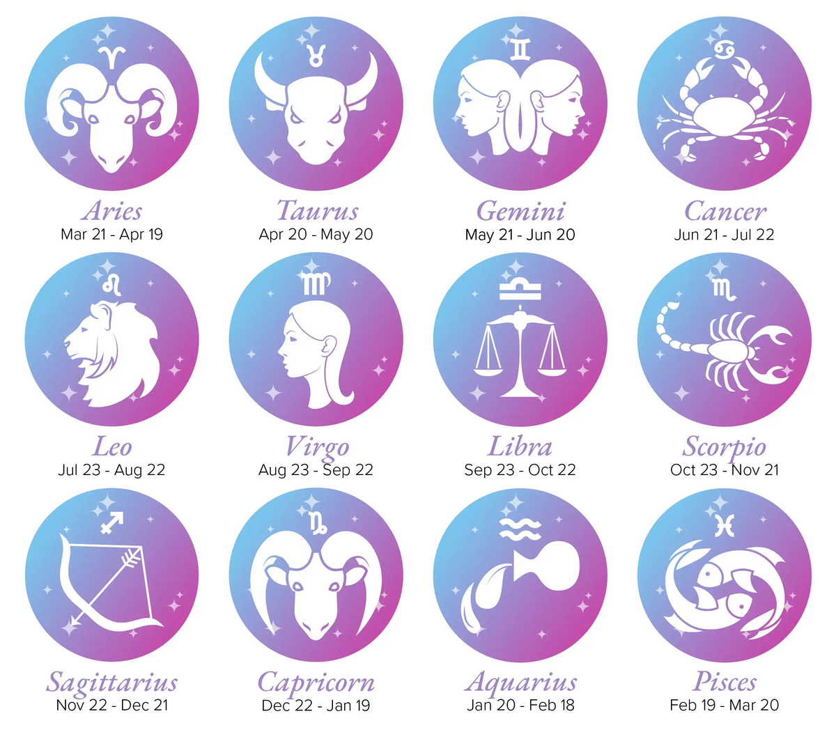 Как и каждая наука, астрология обладает собственным понятийным аппаратом, с которым необходимо познакомиться, прежде чем углубляться в ее изучение. В натальной карте есть четыре основных компонента: В данной статье мы кратко рассмотрим знаки, в более поздних публикациях они будут раскрыты подробнее. Всего знаков зодиака 12, от Овна до Рыб, каждый из которых обозначает соответствующее созвездие. Если представить натальную карту как круг в 360°, то каждый из знаков зодиака будет составлять 30°. Каждый из градусов также делится на 60 минут (60'), а минута - на 60 секунд (60") для большей точности расчетов. На натальной карте знаки обозначаются не полными названиями, а специальными глифами - для краткости. Если вы обратите внимание на изображение выше, то вы сможете увидеть, как располагаются знаки зодиака в натальной карте. Заметьте, что их движение здесь происходит не по часовой стрелке, а против. В более детальных натальных картах указывается также расположение относительно сторон све