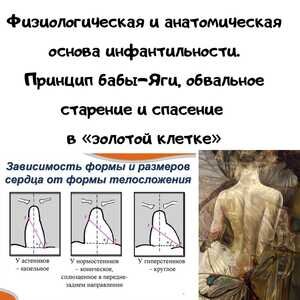 Вредностью может быть «оздоровительное голодание», ОРВИ, тяжелый стресс и вообще все, что угодно. Просто время пришло и ресурсы у системы закончились. Тотальность встречается редко, мозаичность чаще. Инфантильные женщины чаще всего небольшого роста, в последнее время более высокого роста модельной внешности, с тонкокостным скелетом и небольшой головой, мелкими чертами лица. У них высокое узкое небо, редко расставленные зубы (тремы и диастемы). Грудная клетка напоминает детскую, ребра располагаются почти горизонтально. Вот кто из любителей рекомендовать «дыхательных упражнений» учитывает такие «мелочи» как конституциональные особенности? Включая и анатомические особенности желудка, его наполненность. А ведь существуют и анатомически особенности сердца и его расположения в теле.