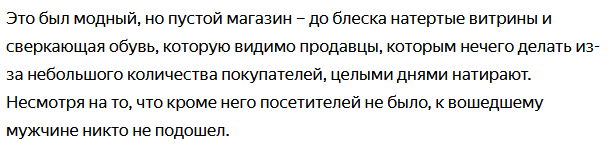 Утро, центр города. Несмотря на ранний час, уже довольно оживлённое место. Здесь было множество магазинов от самых именитых брендов, которые уже готовы были принимать гостей. У одного из таких магазинов задумчиво стоял Игорь Данилович. Постояв ещё минуту, он зашёл.