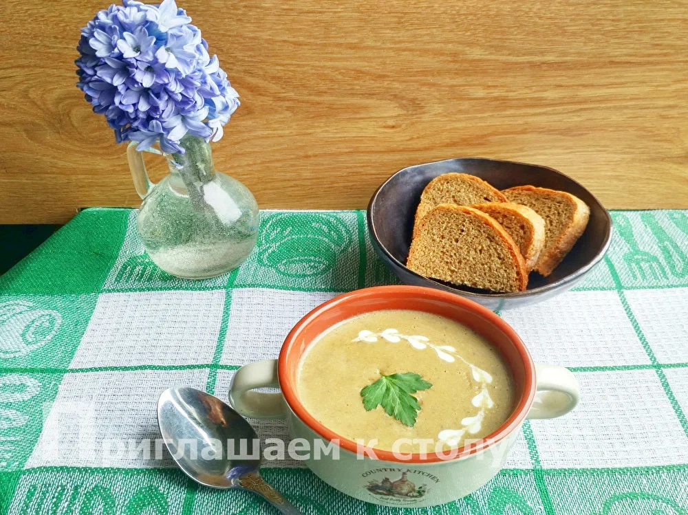 Готовый густой суп-пюре разливаю по тарелкам и подаю на стол.