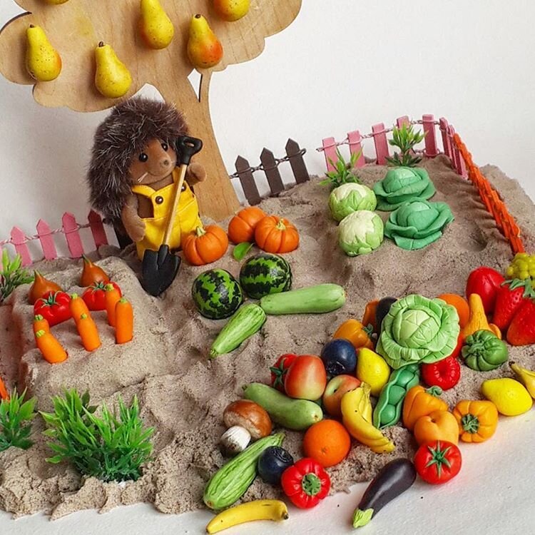 Название: «Найди, что покажу» Дидактическая задача: Найти предмет по сходству. Материал: На двух подносах разложить одинаковые наборы овощей и фруктов. Один (для родителя) накрыть салфеткой. Игровое действие: Родитель показывает на короткое время один из предметов, спрятанных под салфеткой, и снова убирает его, затем предлагает ребёнку: «Найди на другом подносе такой же и вспомни, как он называется». Задание выполняется, пока все фрукты и овощи, спрятанные под салфеткой, не будут названы. Правило: Под салфетку заглядывать нельзя. Название: «Найди, что назову» Дидактическая задача: Найти предмет по слову - названию. Материал: Одинаковые наборы овощей и фруктов. Игровое действие: Поиск «спрятавшихся» овощей и фруктов. Правило: Искать предмет можно в вазе, соответствующей по форме либо окраске названному овощу или фрукту (например, свекла, репа, редька; апельсин, помидор, яблоко и др.). Во все вазы заглядывать нельзя. Название: «Чудесный мешочек» Дидактическая задача: Узнать пред