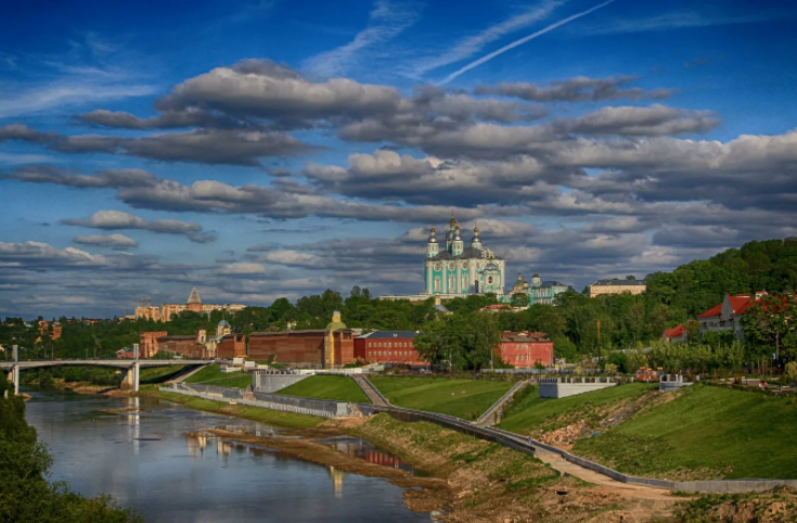 Поймал красивейший вид набережной на фоне собора в Смоленске!