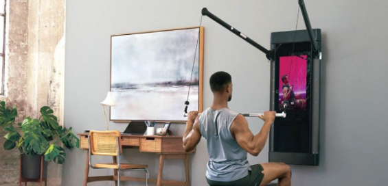 Настенный тренажёр с цифровым дисплеем и системой весов, использующей электромагнитное сопротивление