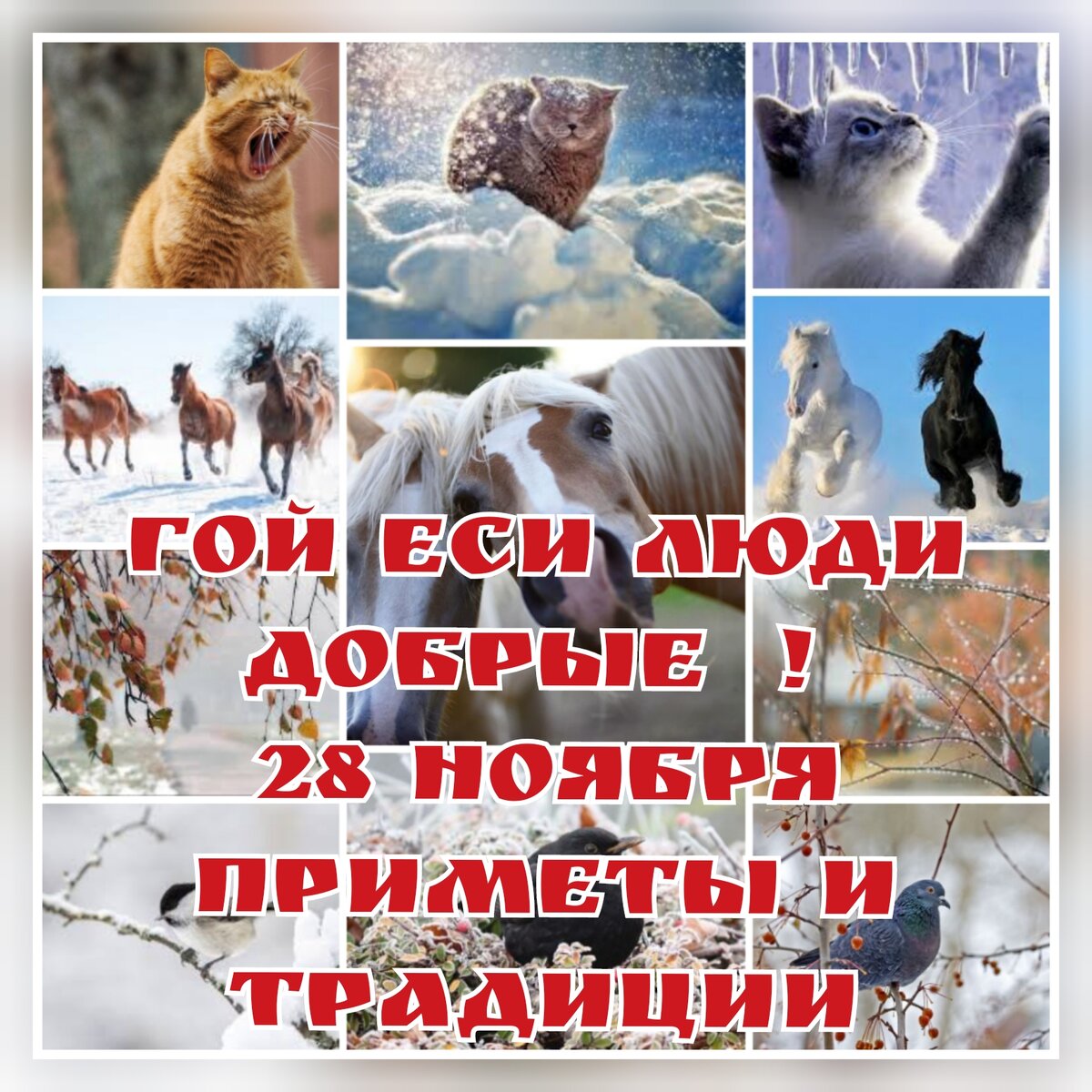 Гой еси, люди добрые! Во славу Пращуров Родных Богов! 28 ноября приметы и традиции Народное название месяца: Грудень, Полузимник, Бездорожник, Листогной Народное название дня: Морозный ( Зима прикатила на пегой кобыле ), День Водных примет На Руси верили, что злые духи очень боятся зимы, а потому, оставляют людей в покое до начала битвы между светом и тьмою. Вода для славянина, это то, что дает жизнь всему живому. Вода – это не просто судьба, эта сила того, что ведет, то есть в воде есть сакральный символизм рока, того, от чего уйти нельзя, однако, как правило, в позитивном смысле. В этот день наши предки ходили слушать воду в колодцах: если она плескалась, можно было ожидать прибыли (плеск воды отождествляли с позвякиванием монет), а спокойная вода означала застой в финансовых делах В этот день уделяли особое внимание лошадям – главным помощникам в нелегком крестьянском труде. Им давали в изобилии овса, а также расчесывали их и украшали гриву лентами. Проверяли сбрую и инструмент