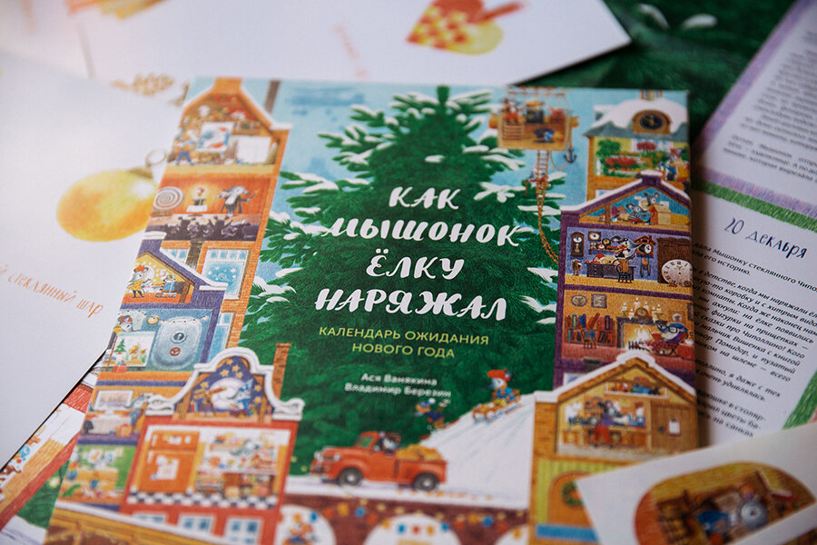 Календарь ожидания Нового года О книге Этот милый календарь-плакат украсит две недели ожидания Нового года. Однажды в декабре Мышонок пришел к маме, которая вязала шапку, и сказал: «Давай в этом году нарядим елку во дворе старинными елочными игрушками». «Отличная идея! — воскликнула мама. — У нас как раз есть такая игрушка: я храню ее с тех пор, как сама была маленькой. А ты обязательно загляни к бабушке и другим нашим родственникам. Наверняка у них тоже остались с детства елочные украшения, про которые они расскажут что-то интересное». Фишки комплекта: Комплект включает в себя: Как играть с календарем: 1. Игра начинается за 15 дней до Нового года, 17 декабря. К этому дню повесьте плакат из набора на стену и подготовьте 32 карточки. Вырежьте детали сундучка, согните их по пунктирным линиям и склейте в отмеченных местах. 2. Каждый день кладите в склеенный сундучок две карточки (с ёлочной игрушкой и лабиринтом) и лист с наклейками для соответствующей даты. Туда же можно добавить вкусняш