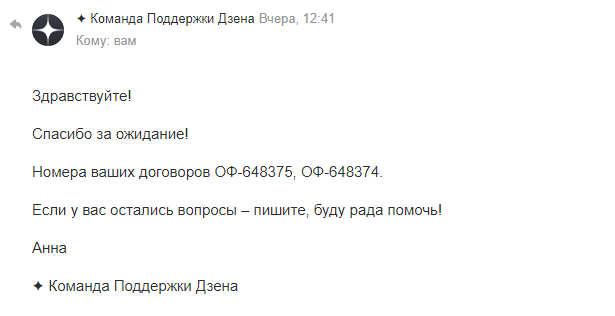Итак, продолжаются мои мытарства в попытках получить мой экземпляр ГПХ. Как писала ранее, мне пессимизировали канал более года назад без объяснения причин, и хотя ГПХ (это их формулировка договора монетизации) обязывает их при первом же запросе предоставить мне мой экземпляр договора, Дзен под различными надуманными, а главное, незаконными предлогами отказывается делать все это дерьмо. Я получила справку 2-НДФЛ, где видно, что при действующем договоре отсутствует доход по непонятным причинам за прошедший год. Согласно нашему гражданскому кодексу, наниматель при штрафе, приостановке и расторжении договора в одностороннем порядке обязан обосновать эти действия -- в части 12 статьи 95 Закона N 44-ФЗ, решение заказчика об одностороннем отказе от исполнения контракта не позднее чем в течение трех рабочих дней с даты принятия указанного решения, размещается в ЕИС и направляется поставщику (подрядчику, исполнителю) по почте заказным письмом с уведомлением о вручении по адресу поставщика (подр
