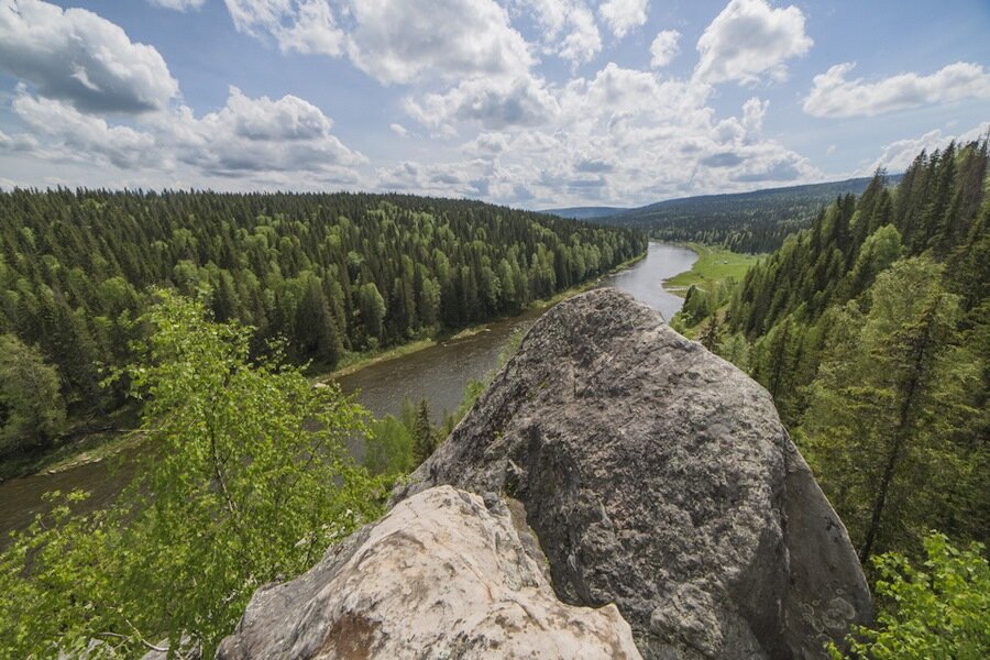 Шумихинские скалы Пермского края известны красивыми видами Усьвы и таёжных лесов