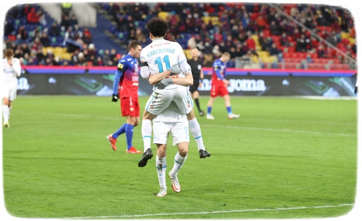 ЦСКА - Зенит 0-2. 16 тур РПЛ. В предыдущем туре ЦСКА сыграл 0-0 с Химками, а Зенит обыграл Нижний Новгород 5-1. Первый матч между этими командами в этом сезоне: Зенит - ЦСКА 1-0. Игровые схемы команд: Составы команд: Запасные: ЦСКА начал с контроля мяча, а Зенит играл от обороны. На 6 минуте Заболотный пробил по воротам, но вратарь Зенита выручил свою команду. На 13 минуте Зайнутдинов пробил по воротам, но вратарь Зенита поймал мяч. На 31 минуте Малком пробил по воротам, но вратарь армейцев поймал мяч. На 34 минуте Клаудиньо открывает счёт в этой игре после паса Малкома. На 40 минуте Обляков пробил по воротам, но вратарь Зенита поймал мяч. Первая часть тайма осталась за ЦСКА, а вторая за Зенитом, по ударам 3-3, в створ 2-2. На 48 минуте Мухин упустил убойный момент. На 50 минуте Кузяев опасно пробил по воротам. На 52 минуте он снова пробил по воротам. На 57 минуте Эджуке упустил убойный момент. На 61 минуте Малком опасно пробил по воротам. На 66 минуте вместо Дзагоева и Эджуке вышли Ах
