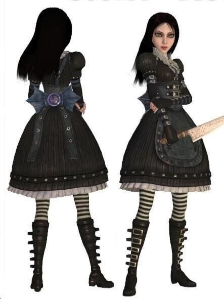Всем привет! Меня зовут Александра, и я увлекаюсь преображением (ООАКом) кукол Monster High и Ever After High. Я продолжаю работать с аутфитом Алисы. Вот так костюм должен выглядеть. Пытаюсь повторить его максимально похоже, но, конечно, с учётом кукольного формата. Сапоги и чулки я показывала в первой части. Также, часть наряда я показывала в статье, где я рассказывала о том как я работаю с заказами. А сейчас немного расскажу, как я делала этот наряд. Чтобы на талии не было лишней толщины (у куколки корсаж, чтобы подчеркнуть талию), я решила сделать блузку и юбку отдельно. Выполнены они из чёрного батиста, для имитации рельефа как на рисунке, я решила наклеить на ткань полоски атласной ленты. Клеила клеевой паутинкой. И отделка кожаными ремешками и декором для ногтей, которые имитируют клёпки. Тут уже пришлось работать суперклеем. Дополняют наряд стоячий гофрированный воротник и оборка из сетки в складку на нижнем срезе юбки. Фартук и корсаж сделаны из кожи, отделка пряжками и кле