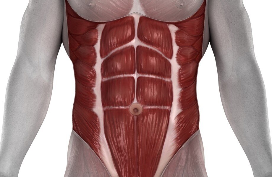 Добрый день уважаемый читатель, этот раздел будет посвящен анатомии мышц человека. Здесь я буду кратко рассказывать о мышцах их роли и основных функциях в нашем организме. В данной статье речь пойдет о мышцах живота. Мышцами живота принято называть группу мышц, расположенных в брюшной полости и обеспечивающих защиту внутренних органов, которые в ней располагаются. Переоценить функции данных мышц сложно, поскольку они обладают очень сложной структурой и выполняют жизненно важные функции. Структуру мышц живота составляют: Прямая мышца живота состоит из двух параллельных мышц. Это парная длинная, лентовидной формы мышца, располагается по бокам от средней белой линии живота*. Берет начало крепления: сверху двумя пучками передней поверхности мечевидного отростка и наружной поверхности хрящей с 5 по 7 ребер. Снизу к лобковому гребню* и закрыта с обоих сторон связочными тканями косых мышц. Функции прямой мышцы живота: Наружная косая мышца живота располагается на передней и боковой поверхно