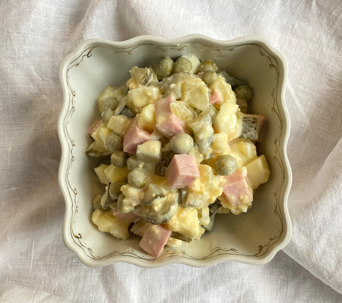 А оливье, на мой вкус, не должен быть оригинальным. Совсем наобороти ни в коем случае!