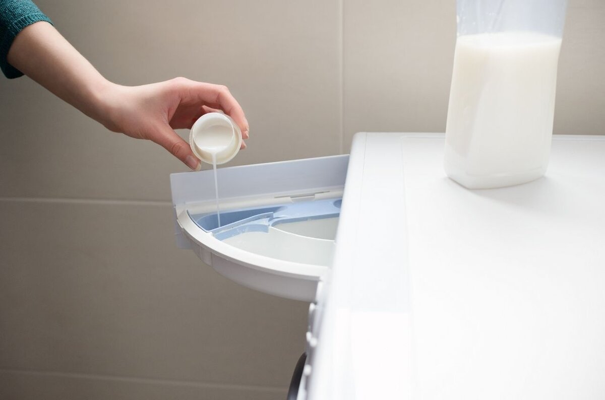 Подойдет любой уксус, как белый, так и яблочный. Он смягчит воду, избавит белье от запахов, поможет избавиться от сложных пятен, пота, вина, кофе. Добавлять нужно 50-100 мл уксуса в отсек для кондиционера. Не переживайте, запах уксуса быстро выветривается при высыхании. Если все же хотите, чтобы белье после стирки не пахло уксусом, добавьте в уксус 5-7 капель любого эфирного масла.