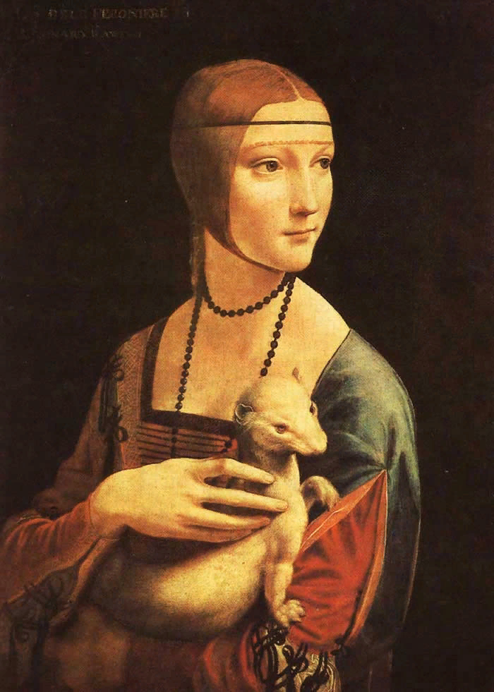 Картина была написана ближе к концу XV века. Девушка на картине – это предположительно Чечилия Галлерони, фаворитка герцога Людо