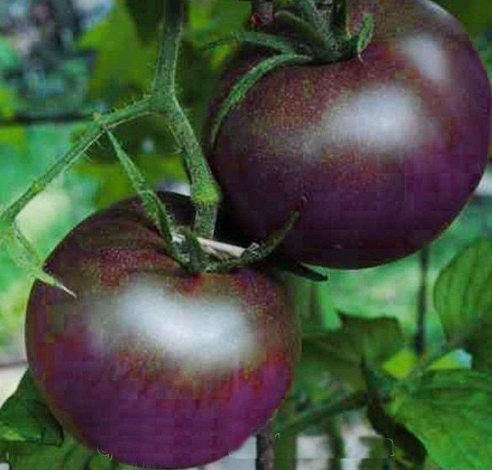 Плоды округлые, тёмно-фиолетовые (почти чёрные), мясистые, сладкие, с повышенным содержанием каротиноидов и антоциана - мощного антиоксиданта. Сорт индетерминантный раннеспелый и очень урожайный.