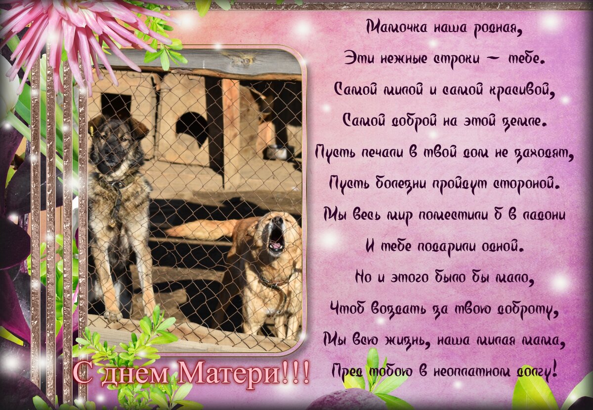 Дорогие наши женщины! Сегодня близкие поздравят вас с Днем матери, который в России отмечается в последнее воскресенье ноября. Мы не будем повторять слова, которые вам скажут дорогие вашему сердцу люди, сейчас речь пойдет о другом. Сегодня нам хотелось бы поздравить всех - всех женщин, которые стали мамами для... четвероногих деток. Которые вынянчили, вырастили. воспитали и... разбаловали замечательных мохнато-хвостатых ребятишек, даже если этим деткам по 5, 8, 10 и более лет! Примите в этот день поздравление от руководства приюта "Надежда", наших работников и волонтеров! Пусть в вашем доме всегда будет спокойно, уютно и радостно, а в ваших глазах отражаются только любимые лица и мордочки. Пусть ваши родные и пушистые согреют вас своим теплом, подарят чудесное настроение и…красивые комплименты в виде урчания и повизгивания! Ваши добрые сердца их заслужили! Пусть в вашей жизни будет больше поводов для радости!