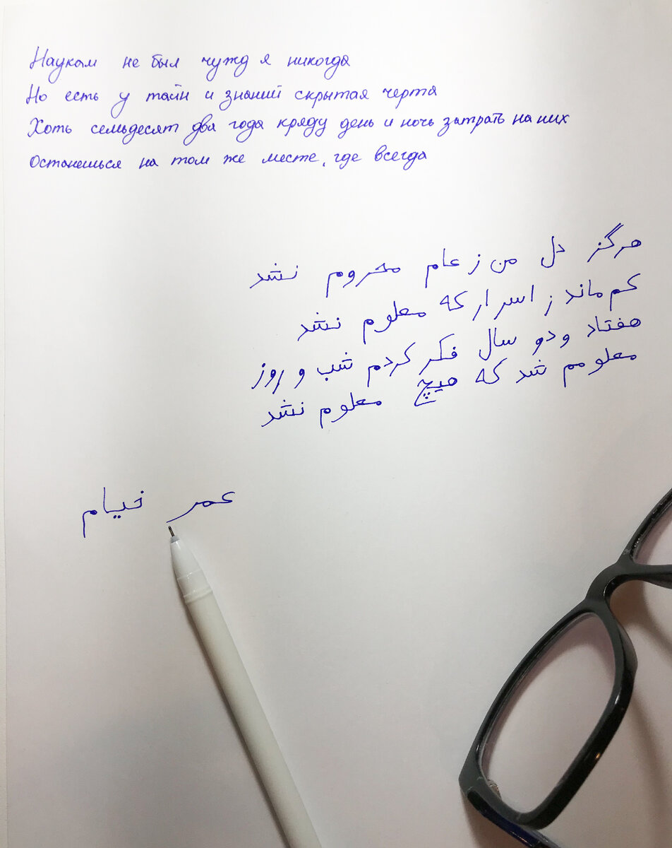 Чтобы проверить себя "на прочность", я решил взяться, ни много ни мало, за собственный перевод одного из рубаи (رباعی) известного поэта, взяв за основу оригинальный текст XI века: