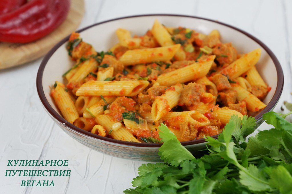 Пенне с сейтаном и соусом из сладкого перца с травами
