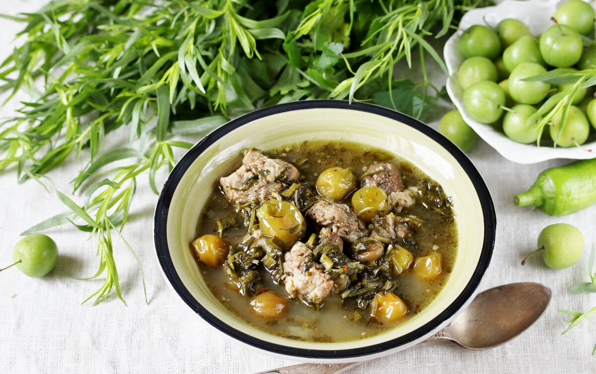 Чакапули- грузинская похлёбка с алычой и эстрагоном.