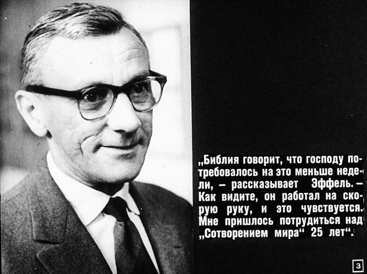 Судьба комиксов Эффеля в Советском Союзе была удивительна: несколько театральных постановок. Балет А.Петрова "Сотворение мира", балет В. Власова "Сотворение Евы", оперетта М.Табачникова "Божественная комедия"... А ещё - остроумное балетное либретто Валентина Катаева.