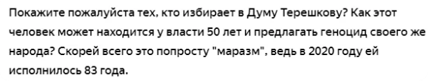 "Как она может вершить судьбы людей!?" Терешкова совсем "тронулась" головой.