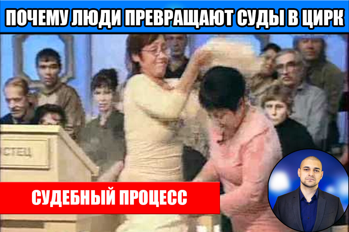 В настоящий момент я работаю только с адекватными клиентами, но было на моей практике и такое, что люди, ввиду незнания (точнее, ввиду мысли, что "они всё знают"), превращали судебные заседания в цирк. Я не хочу никого оскорблять, но в основном заседания в цирк превращают люди старшего поколения, 35+ лет, но я ни в коем случае не обобщаю, но больше всего цирк в судах устраивали в основном люди этой возрастной категории. Что я подразумеваю под цирком в суде? Это вечные выкрики, оскорбления, какие-то нелепые шутки в адрес суда и сторон. В общем, вы поймёте по ходу статьи, о чём я говорю. Как людей оболванивали и показывали несуществующие суды Людям долгое время транслировали (и транслируют сейчас), что судебные заседания должны выглядеть так: Ну или вот так вот: В общем, если коротко, то людям показывают, что в суде "прав" тот, кто больше всех кричит, кто больше всех показывает "артистизм", полагая, что чем сильнее человек кричит о своих доказательствах, тем сильнее они смогут убедить