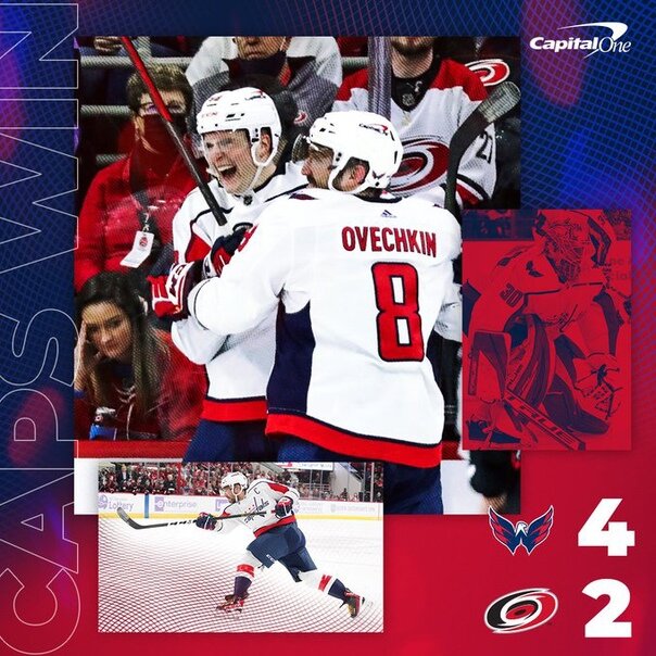 В Роли (США) на стадионе «Пи-Эн-Си-Арена» закончился матч регулярного чемпионата Национальной хоккейной лиги между «Каролиной Харрикейнз» и «Вашингтон Кэпиталз». Встреча завершилась победой гостей со счётом 4:2. Российский нападающий и капитан «Вашингтона» Александр Овечкин сумел забросить шайбу, которая стала для него 749-й в НХЛ, также заработав показатель полезности «+1». 36-летний россиянин провёл на льду 20 минут и 39 секунд, нанеся четыре броска в створ, совершив по одной потере и перехвату и проведя один силовой приём. Овечкин стал третьим игроком в истории НХЛ, которому удалось в возрасте 36 лет забросить 10 шайб и отдать 10 результативных передач за один календарный месяц. Кроме него, этого достижения добились Горди Хоу в декабре 1965 года и Теэму Селянне в ноябре 2006 года.