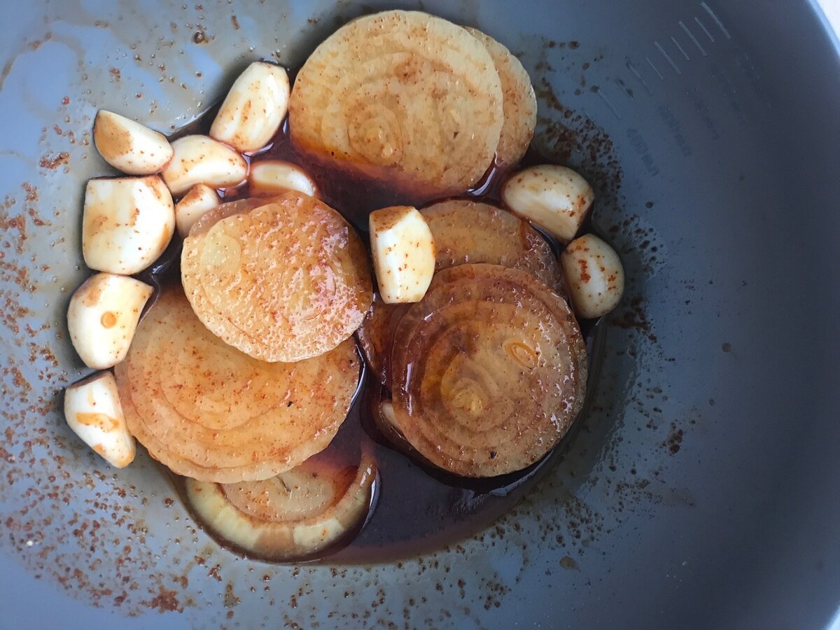 Всем привет решила приготовить овощи гриль в духовке. Взяла соевый соус,добавила растительного масло,соль,перец и копченую паприку. Нарезала кабачек,морковь,лук,чеснок,томат,перец,картофель,к сожалению не оказалось баклажанов. После все чатильно перемешиваем и маринуем 20-30 минут Далее выкладываем на поднос предварительно положив бумагу для запекания. Так же добавила еще грибы шампиньоны и поставила запекаться при 200 градусах на 30 минут. Результат очень вкусные овощи в это время года когда нет возможности приготовить на углях.