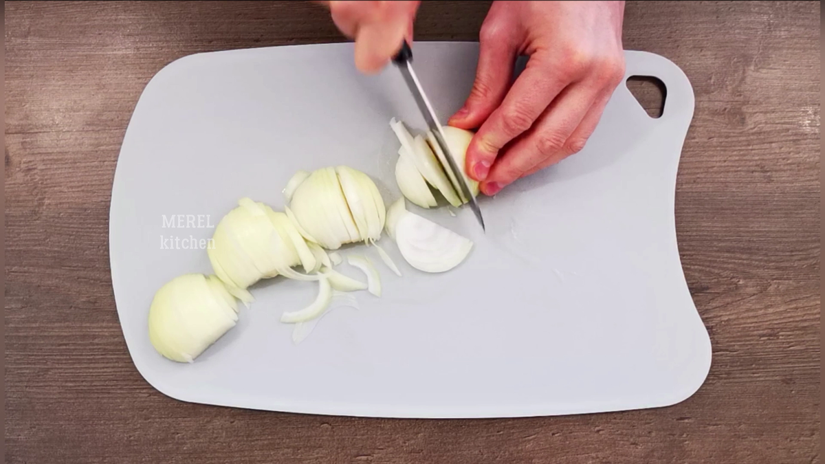 Жена попробовала и сказала, что вкуснее даже чем жареный картофель, а готовится невероятно просто и быстро, теперь будут готовить такую вкусную картошку намного чаще. Сегодня хочу поделиться с вами рецептом вкусного картофельного гратена «по-французски», блюдо получается очень ароматным, его можно подавать как самостоятельное блюдо или как гарнир к мясу или рыбе. Когда приходит много гостей, меня этот рецепт очень сильно выручает. Если любите картошку, то обязательно посмотрите подборку моих новых рецептов, вам понравится 👇 Для приготовления картофельного гратена «по-французски» беру две репчатых луковицы и нарезаю их тонкими полукольцами. Разогреваю сковородку, кладу 40 граммов сливочного масла и выкладываю лук обжариваться. Следом беру любые грибы 300 граммов, у меня меня замороженные лисички, которые я предварительно разморозил и промыл. Грибы нарезаю небольшими кусочками и отправляю обжариваться на сковородку к луку. Обжариваю лук с грибами примерно 7-8 минут. Потом беру д
