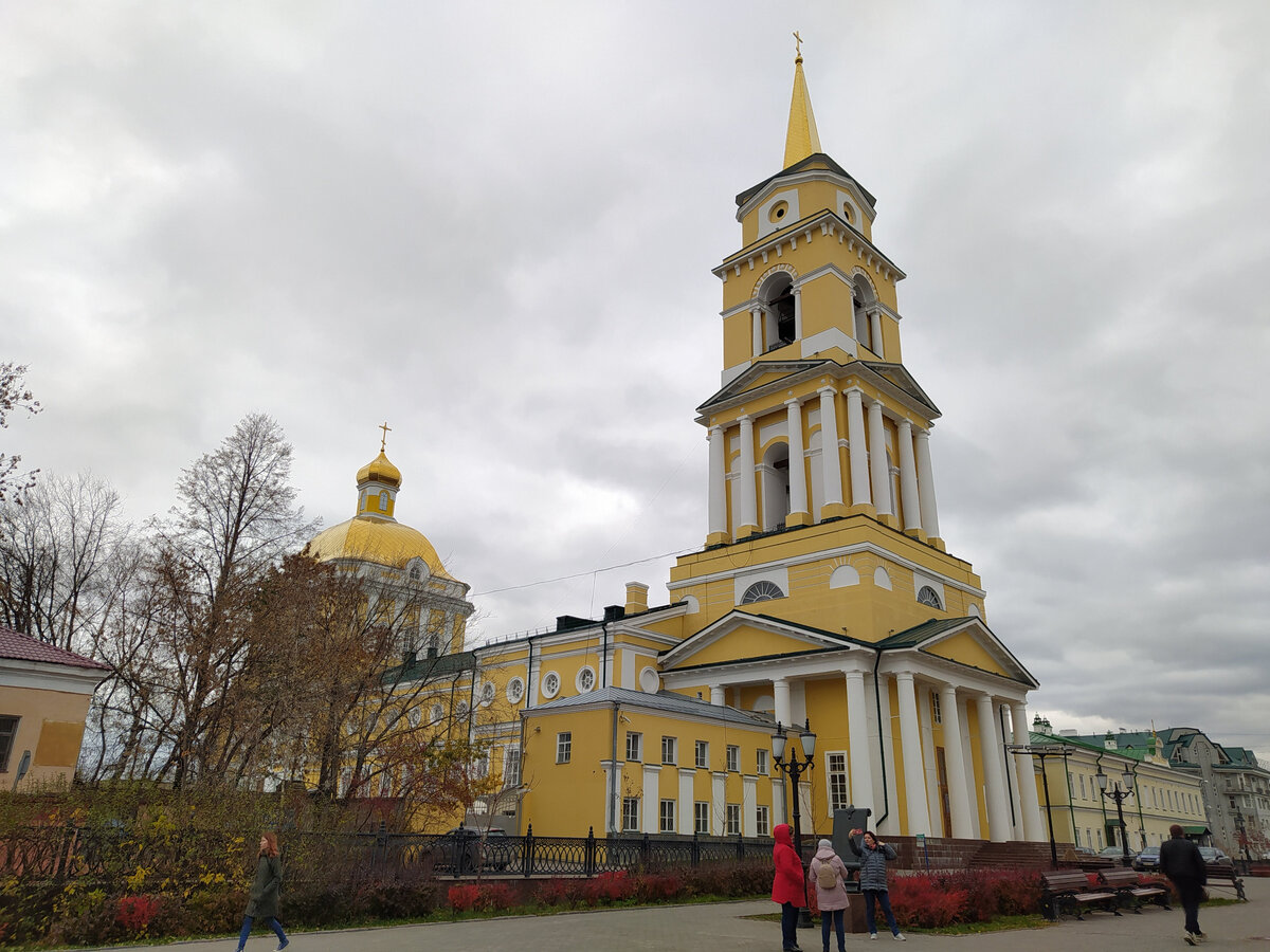 Строительство собора началось в 1798 году и храм должен был стать центром православия в Пермской губернии, центральным зданием ансамбля мужского Спасо-Преображенского монастыря. Строительство храмовой части завершено в 1818 году.
