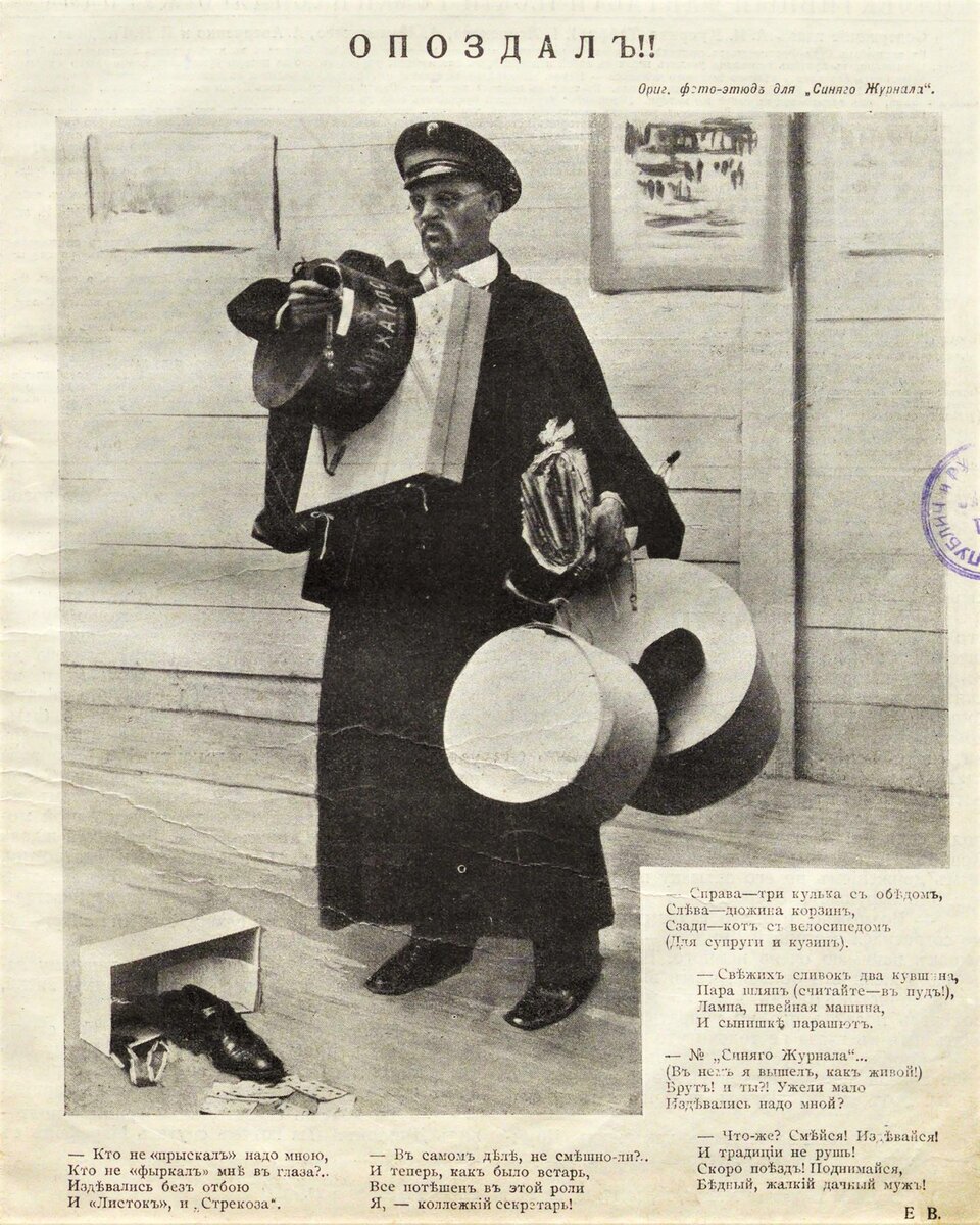Я уже недавно писал про “дачных мужей”. В конце 19 - начале 20 веков так называли глав семейства, которым всё лето приходилось ездить на работу с дачи. На лето многие петербургские семьи съезжали с арендованных квартир на арендованные дачи ради экономии. Все лето “дачным мужьям” приходилось ездить на пригородных поездах и извозчиках, и тащить из города огромное количество различных покупок для семьи. Вот как в 1889г. Чехов описывает список поручений “дачного мужа” в своей “шутке в одном действии” “Трагик поневоле”: “Да вот, постой, я тебе сейчас прочту. (Вынимает из кармана записочку и читает.) Шар для лампы; 1 фунт ветчинной колбасы; гвоздики и корицы на 5 коп.; касторового масла для Миши; 10 фунтов сахарного песку; взять из дому медный таз и ступку для сахара; карболовой кислоты, персидского порошку, пудры на 10 коп.; 20 бутылок пива; уксусной эссенции и корсет для m-lle Шансо № 82 ...уф! и взять дома Мишино осеннее пальто и калоши. Это приказ супруги и семейства. Теперь поручения ми