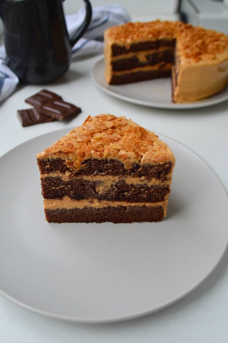 Очередной интересный рецепт торта, в котором очень мало ингредиентов, но какой же шикарный результат у вас получится) Даже если вы не захотите приготовить этот торт (что очень даже зря) обязательно сохраните его из-за бисквита, который элементарно готовится. ИНГРЕДИЕНТЫ (форма 18 см): 📝 ТЕСТО: 45 грамм муки пшеничной, 90 грамм сахара, 18 грамм какао, 3 яйца КРЕМ: 1 банка варёной сгущёнки, 170 грамм творожного сыра 1️⃣ Отделяем белки от желтков, белки взбиваем минут 5 и добавляем по ложке сахара, постоянно взбиваясь. 2️⃣ Затем, не переставая взбивать, добавляем желтки по одному. Добавили и сразу перемешиваем. 3️⃣ Муку смешать с какао, и просеять в белковую смесь. Подсыпаем все частями. Часть подсыпали, перемешали и так пока все не закончится, мешаем уже лопаткой, чтобы белки не осели. 4️⃣ Перекладываем тесто в форму, и ставим запекаться при 170 градусах на 40 минут. Бисквит проверяем зубочисткой, если она сухая, то готов. 5️⃣ Форму с бисквитом вынимаем из духовки и переворачив
