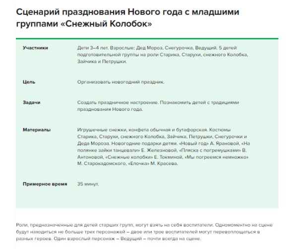 Скоро прекрасная пора - Новый год. Начните подготовку к празднику заранее. Предлагаем изучить сценарий «Снежный Колобок». Скачать сценарий #образование #детский сад #сценарий