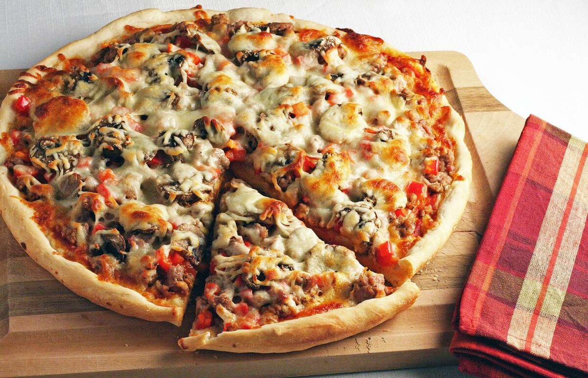 Дорогие мои читатели, предлагаю вашему вниманию, простой и очень вкусный рецепт пиццы. Рецепт начинки я придумала сама. Этот рецепт допускает кулинарные эксперименты: наполнение для пиццы можно выбирать по своему вкусу. ПРОДУКТЫ ДЛЯ ТЕСТА: Пшеничная мука хлебопекарная500 г Сухие дрожжи7 г Вода270 мл = 270 г Сахар2 ч. л. = 16 г Соль1 ч. л. = 10 г Подсолнечное масло рафинированное2 ст. л. = 34 г ДЛЯ СОУСА И НАЧИНКИ: Помидоры в собственном соку375 г Красный лук1 шт. = 75 г Чеснок3 зубчик = 12 г Специи по вкусу Колбаса по вкусу Сыр по вкусу Помидор по вкусу Подогрейте воду, чтобы она была теплой. НАЧАТЬ ГОТОВИТЬ: 1. Смешайте воду с дрожжами, сахаром и солью. 2. Просейте муку, добавьте воду с дрожжами и масло. Перемешайте, разделите тесто на 2 части, оставьте на 1-2 часа под пленкой в теплом месте. 3. В блендере смешайте томаты в собственном соку, чеснок, красный лук и специи. Влейте соус на разогретую сковороду с маслом и выпаривайте жидкость в течение примерно 20 минут. 4. Для начинки на