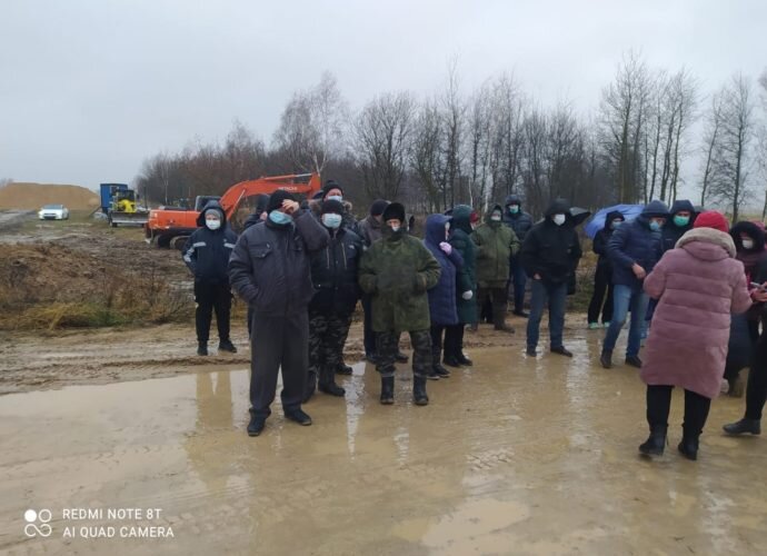 Прознав о вновь возникшей угрозе, к месту строительства подтянулись гневно настроенные местные жители. Они, боясь новых экологических и других проблем после возведения гигантских свинарников, выстроились в живой щит и блокировали передвижение и работу строительной и автомобильной спецтехники. Люди потребовали от представителей подрядчика агрохолдинга «Мираторг» показать им разрешающие строительство бетонки документы. Но необходимые бумаги так и не увидели: подрядчик принялся кормить селян завтраками, но работы при этом приостанавливать не спешил.